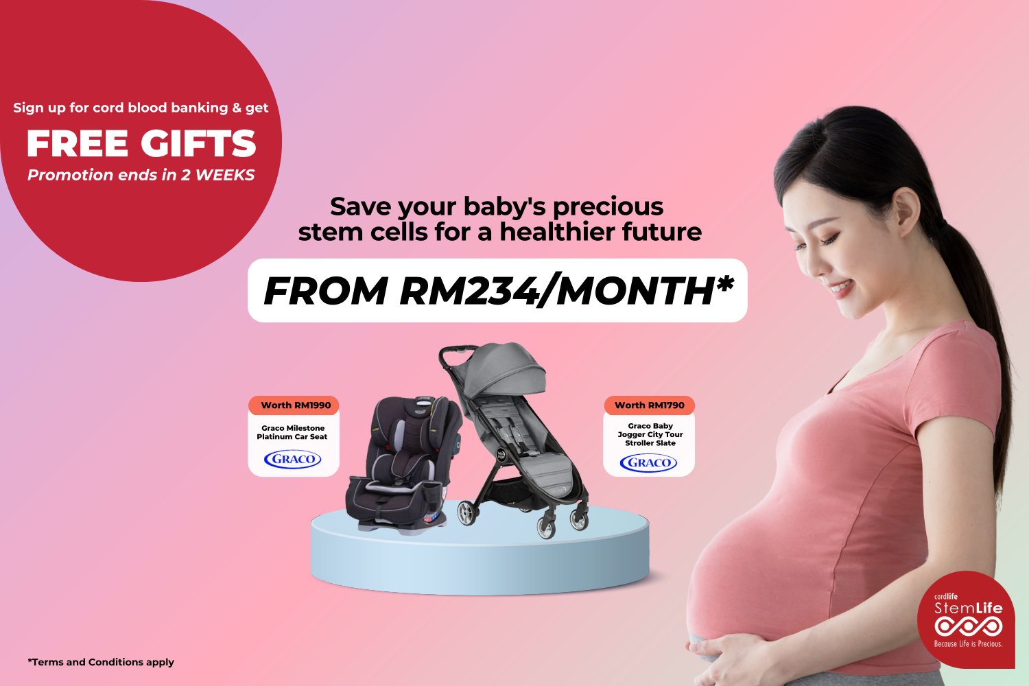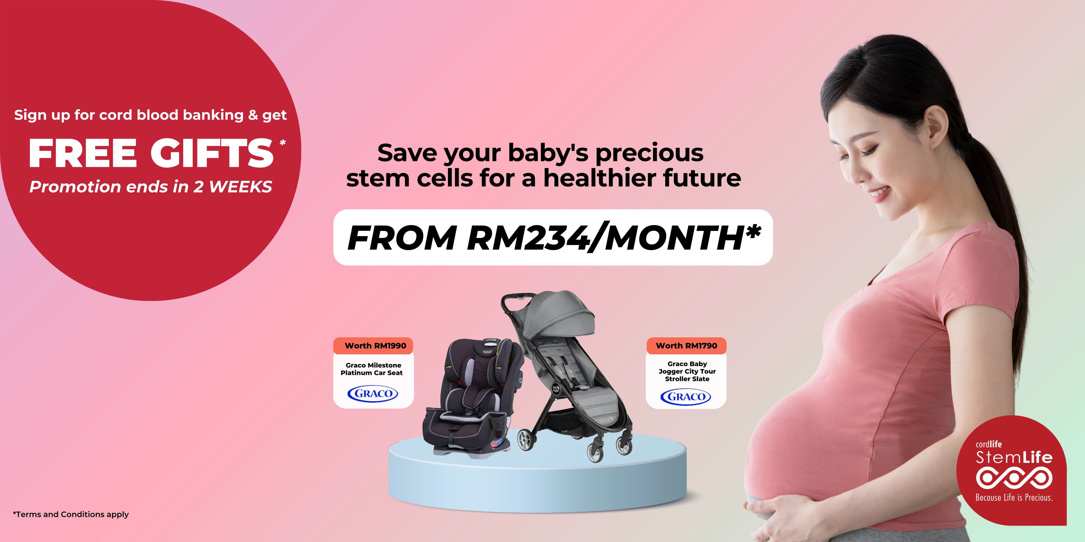 Enrol for umbilical cord blood banking with us now from RM234 per month * to enjoy EXCLUSIVE and high-quality free gifts. There is only one chance to save your child's cord blood, which is at birth. Don't miss the chance to make a worthwhile health investment for your precious child! You will never know if you need to use the cord blood stem cells, but if you do, you will be prepared!